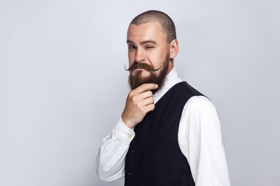 Guys are blending styles like barbers blend fades. A boxed beard with stubble fades. A fuller chin with lighter cheeks. Even short beards paired with longer, shaped moustaches. This is the year of the beardstache.