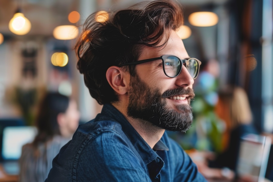 Glasses dominate the upper half of the face. The beard controls the lower. Together, they form a visual frame. A beard with clean lines and intentional shape helps anchor the face beneath the frames, preventing the look from feeling top-heavy.