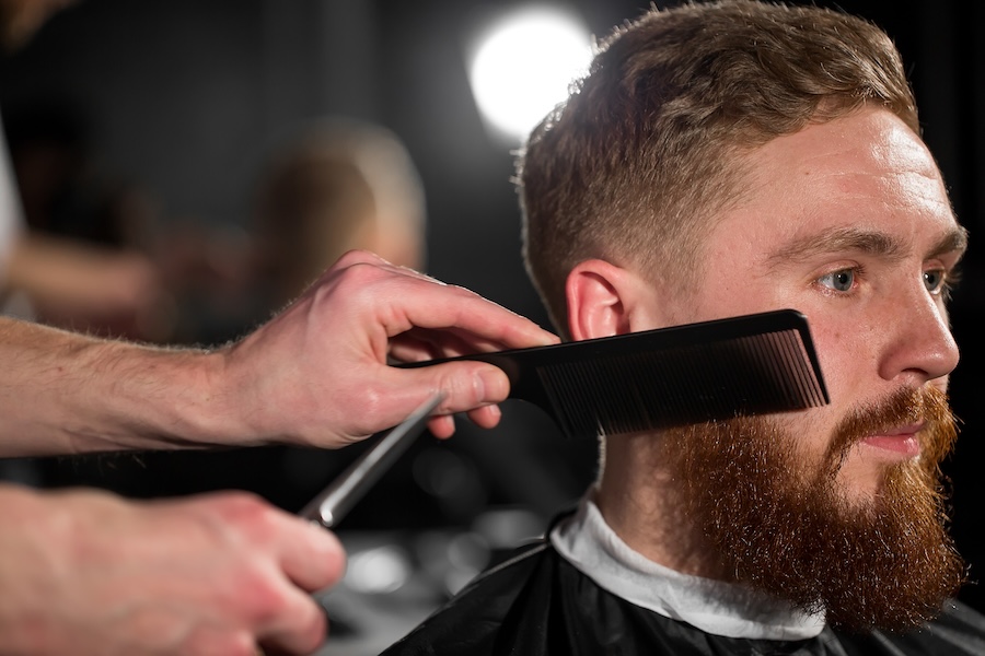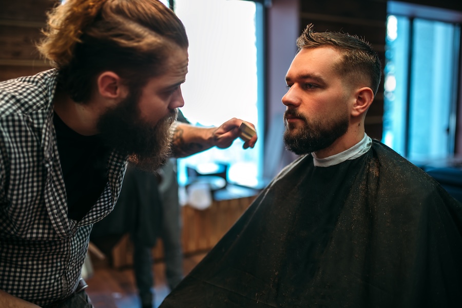 Where you can’t miss a day is with beard oil and brushing. Most beard tapers go with a full (or boxed) beard. A healthy dose of beard oil keeps the beard looking shiny and thick.