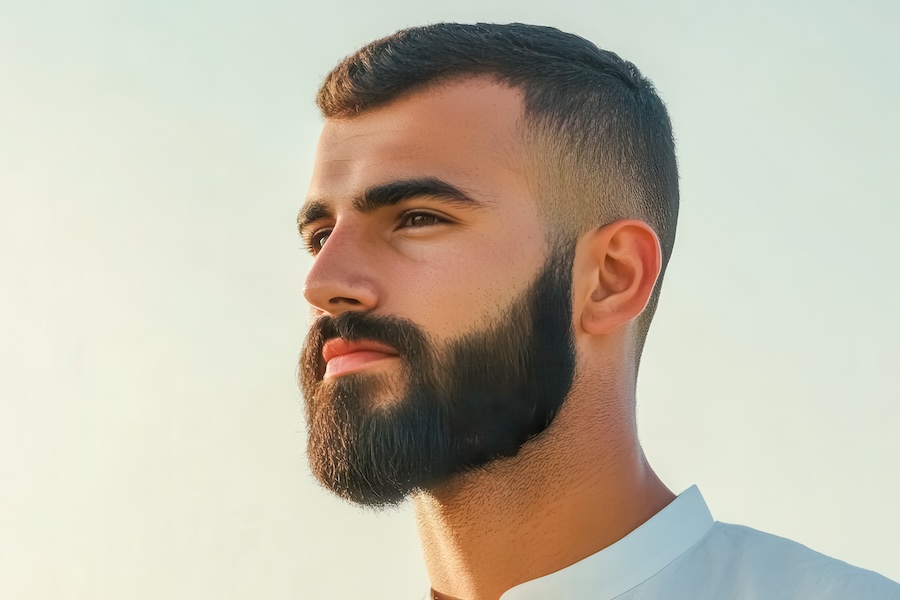 Athletes also favour the beard taper. The reduced bulk at the sides helps with comfort, sweat, and hygiene.